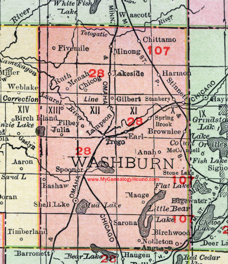 This Washburn County map is a portion of a 1912 map of Wisconsin by Rand McNally.