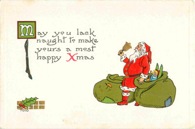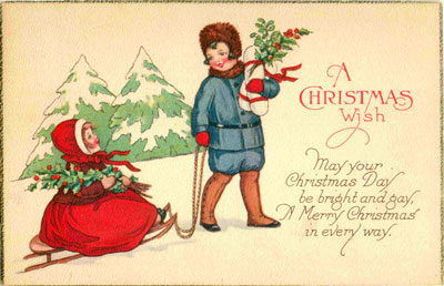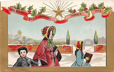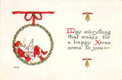 In times past, it was traditional to send colorful postcards in celebration of the various holidays. This group of vintage Christmas postcards dates from the early 1900's.
